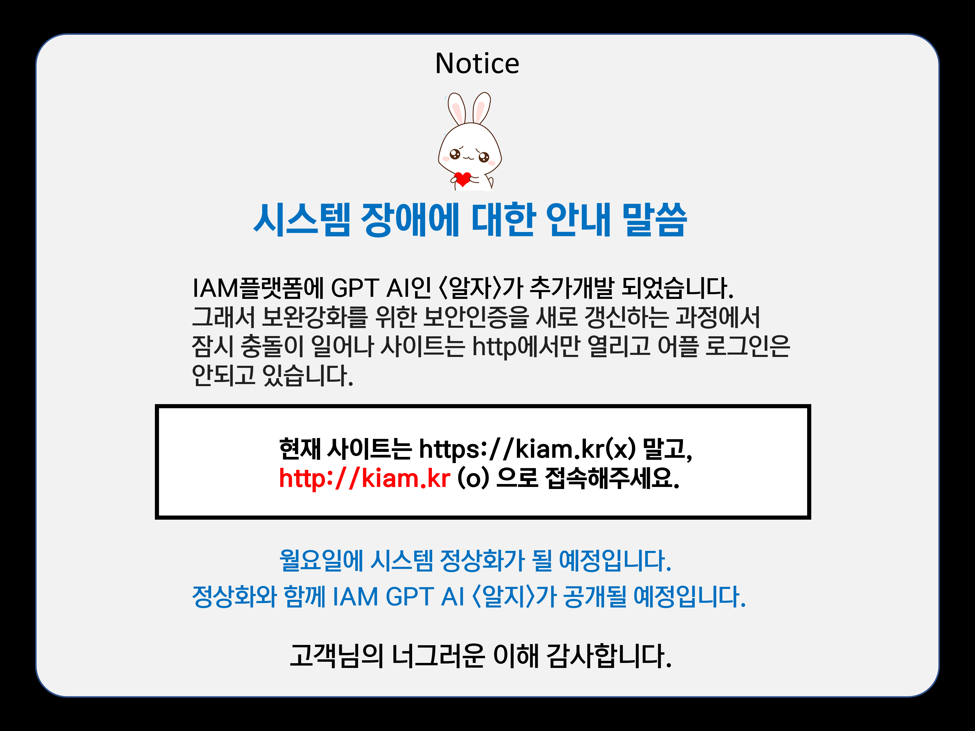 전체 [공지 제230306-02호] IAM플랫폼 시스템 정상화 공지 2023-03-06 22214